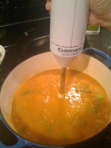 -When time’s up, get our your trusty immersion blender and whir away until it ‘s nice and smooth.