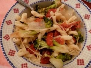 This weekend we made a simple pasta meal with roasted broccoli and onions and sun-dried tomatoes. We took a small handful