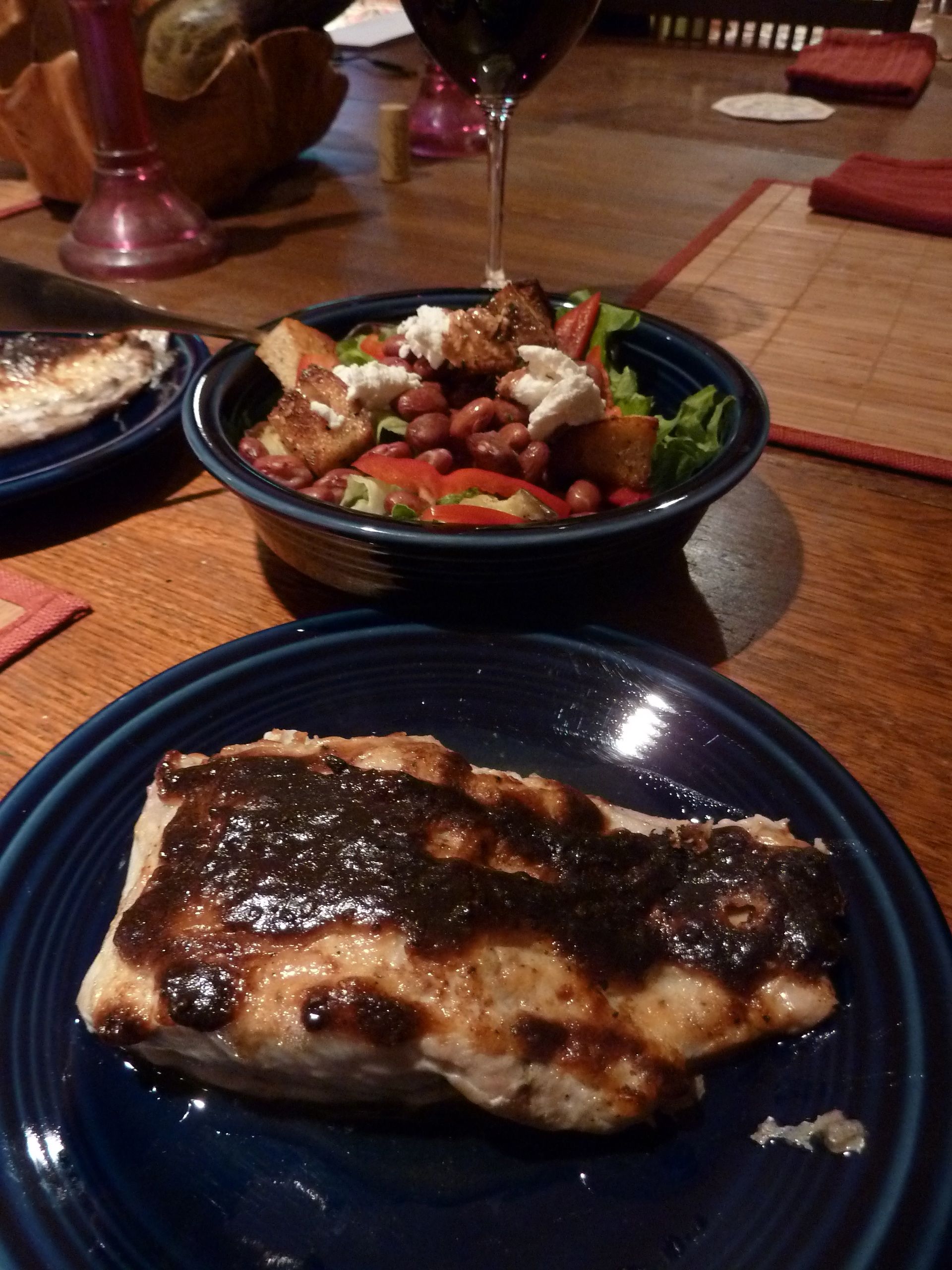 We still had two bluefish fillets in the fridge from our Cape Ann Fresh Catch share on Tuesday. We did another round of Broiled Bluefish with Smoky Mayo since it was so good on Day 2. And we had a small side salad. See those beans on top? Vermont Cranberry Beans – the best homegrown beans. Ever.
